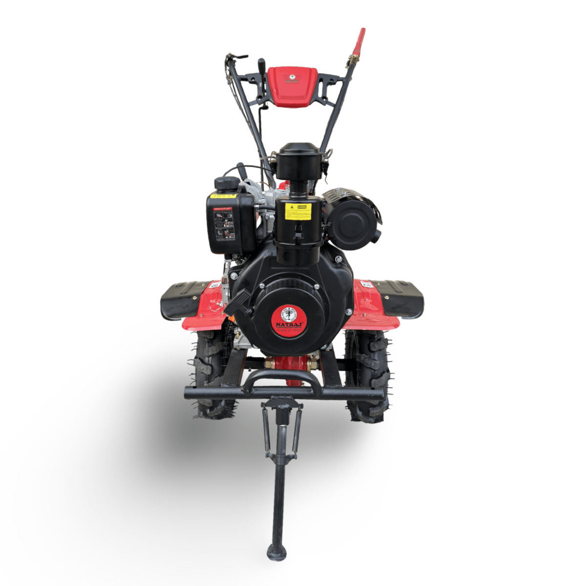 Unleash superior farming efficiency with the NATRAJ SUPER AS-1050GA , a robust power weeder and tiller meticulously engineered for India’s diverse agricultural needs. This machine is the ultimate solution for maintaining pristine fruit gardens, thriving vegetable fields, and delicate floriculture plots where conventional tractors simply cannot venture. At its core, a formidable 10 HP, 4-stroke Diesel engine operates at a dynamic 3600 RPM, delivering the relentless power needed to conquer tough soil and dense weed infestations. Its array of 32 specially designed dry land blades cuts through the earth with precision, providing an impressive working width of 4.5 feet and an adjustable tilling depth of 8-11 inches. This ensures complete weed removal from the roots while perfectly aerating the soil for healthier crops. With a large 3.6-litre Diesel tank for extended run times, this tiller is built for productivity. Perfectly balanced for small farms and lawns, the AS-1050GA NATRAJ SUPER is the definitive tool for farmers seeking power, maneuverability, and unmatched performance in compact spaces.