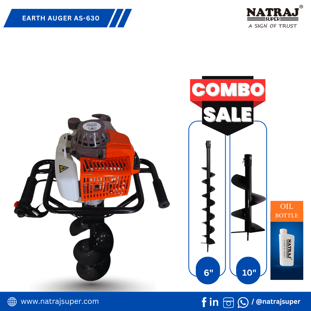 This is Natraj Super Model number Agriculture GASOLINE Earth Auger AS630 which is 63CC 2 Stroke and this very “Light Weight” is heavy duty with premium quality as Natraj Super is providing “Non-Stop Drill” over Soil. One of the most important thing is, all of the products of Natraj Super is well tested in all circumstances on priority basis.